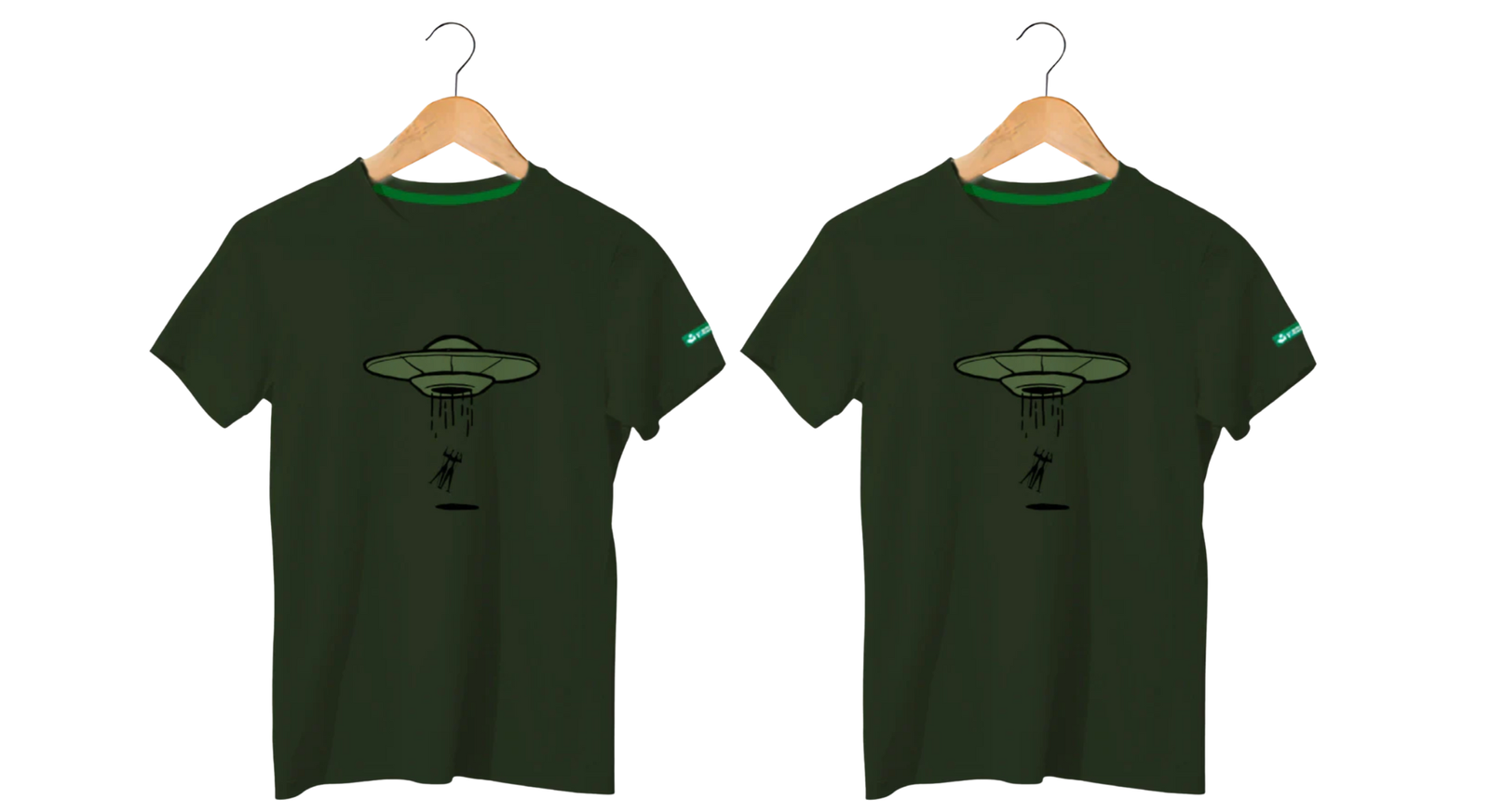 Candangos Espaciais: Inspirada nas histórias de OVNIs em Brasília, esta camiseta brinca com a ideia da estátua dos 2 candangos (que fica na Praça dos 3 poderes) sendo abduzidos, refletindo a curiosidade e o misticismo que cercam a capital. COMPOSIÇÃO: 96% ALGODÃO + 4% ELASTANO.